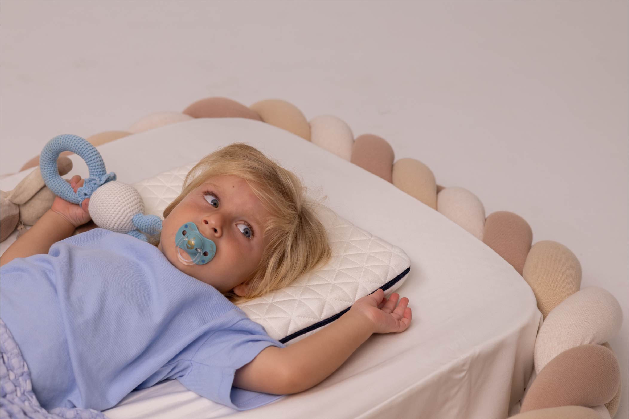 Diseñada con un perfil bajo cuidadosamente calculado, nuestra almohada proporciona el soporte adecuado para cada etapa de desarrollo. Se adapta perfectamente a las necesidades cambiantes de tu bebé desde los primeros meses hasta la primera infancia.